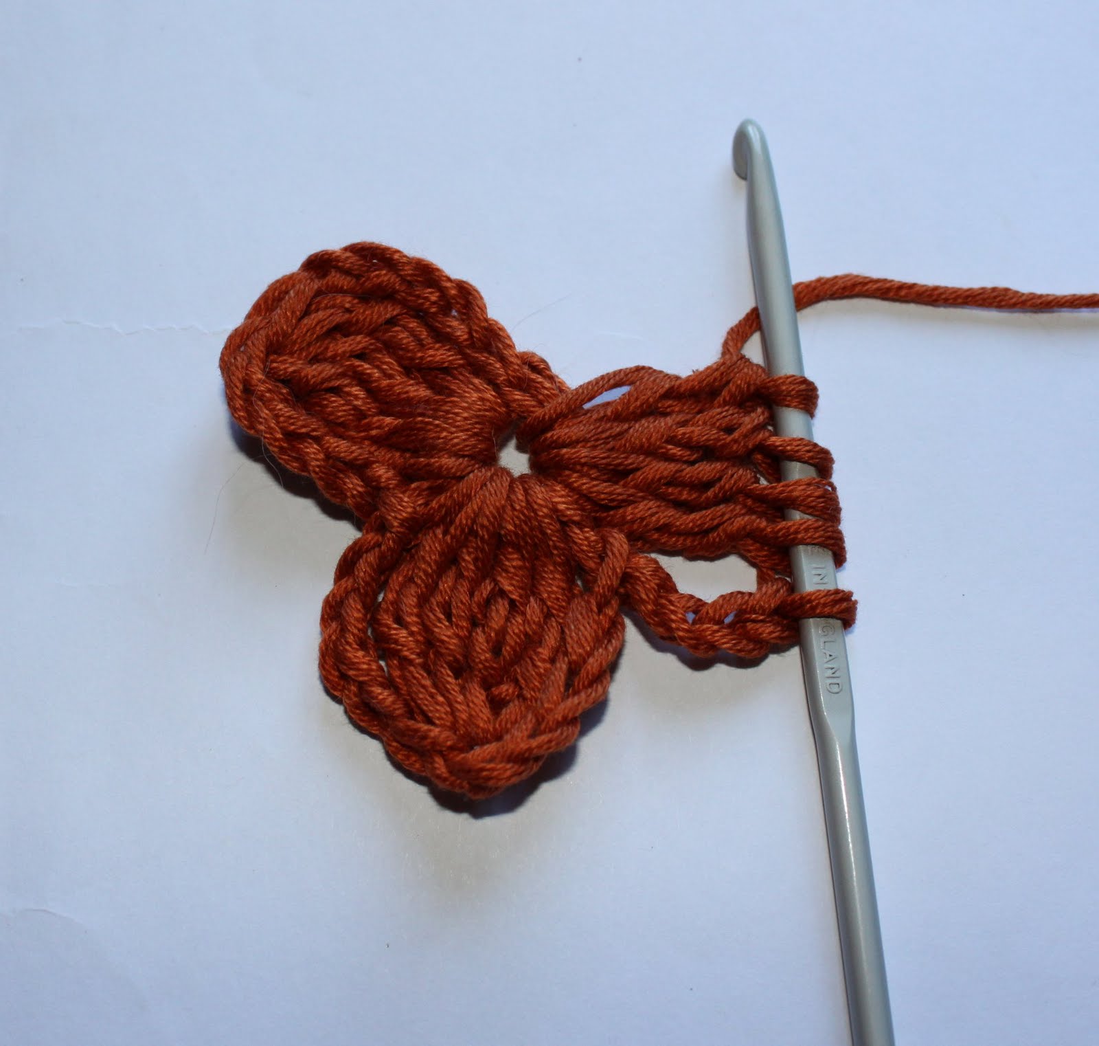 Teen ensin 3 ketjusilmukkaa, sitten loppuu ymmärrys, mikä on yhtä langankiertoa vaille valmis pylväs