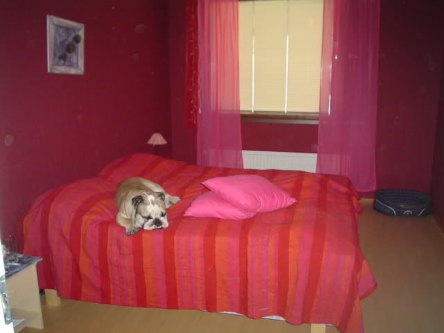 ), musta ja teräs. Makuuhuoneessa väreinä ovat ah niin ankea viininpunainen ja musta-kombinaatio, ja makuuhuoneessani on myös kamala tv-tietokone-yhdistelmä koska muualle ei mahdu (ja tv toimii tietokoneen näyttönä, kun isompi töllö on olohuoneessa, enkä jaksa haaskata hyvää 32" tapitinta muuallekaan). Kaiken kaikkiaan asuntoni on mauton, ja kamala, mutta pääasia että viihdyn itse täällä edes jotenkin, ja koen että asunto näyttää